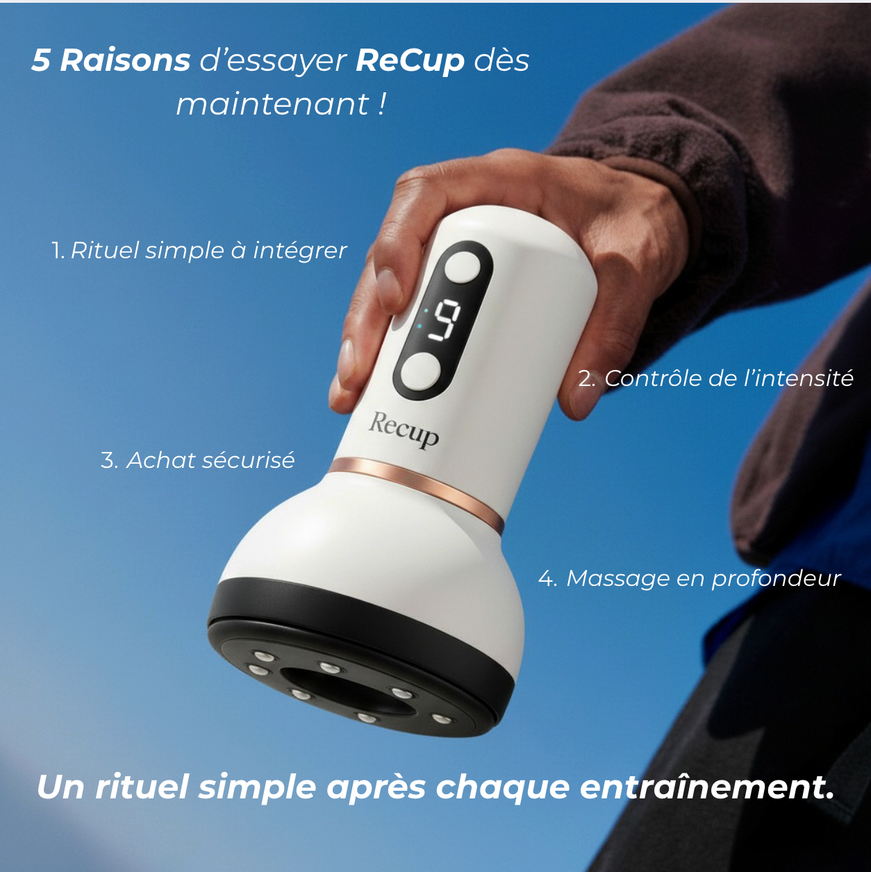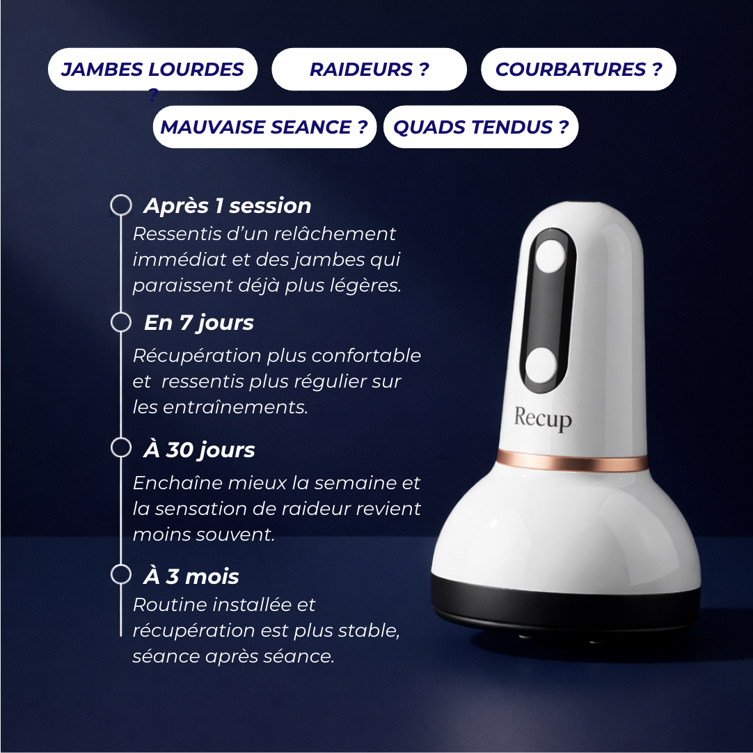 Tu dois sentir une pression forte mais supportable, jamais une douleur vive. De petites rougeurs peuvent apparaître puis disparaissent en 24–48 h si tu ne restes pas trop longtemps au même endroit.